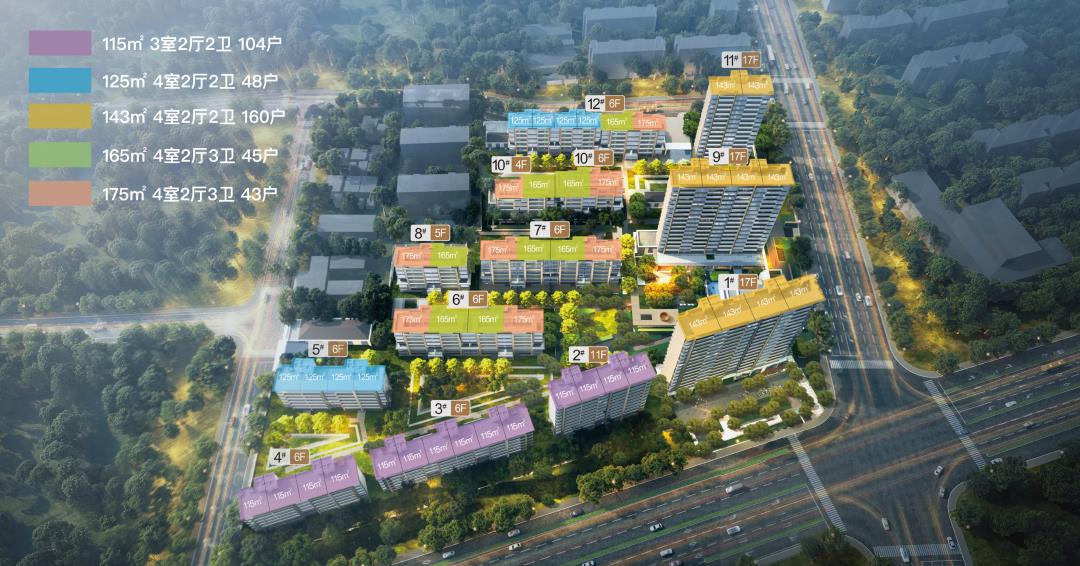 建面约115平,均价约31000元/平,2#号楼精拆洋房,总高17层2梯4户;建建面积约115-175平,1#9#号楼精拆小高层,总高6层1梯2户,均价约26000-27000元/平,